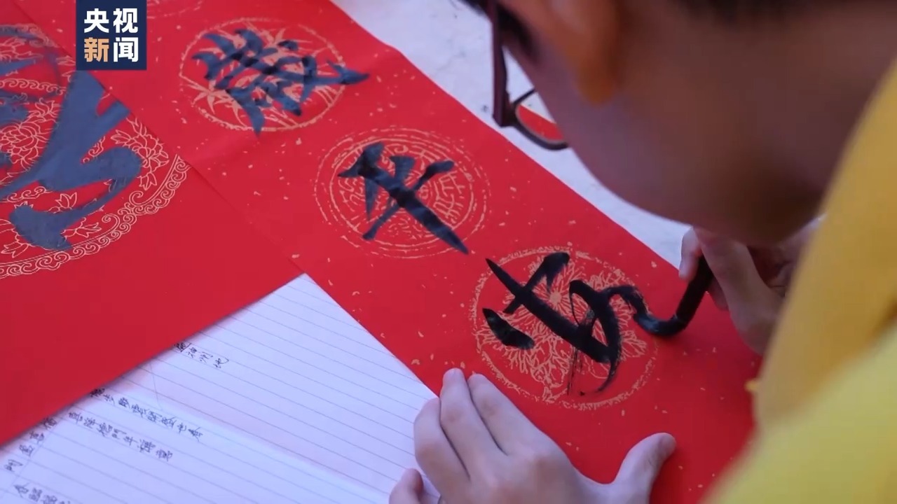 总台记者 刘畅:在新加坡书法家协会的院子中,大量民众来到这里挥毫泼墨,表达他们对龙年春节的祝福。