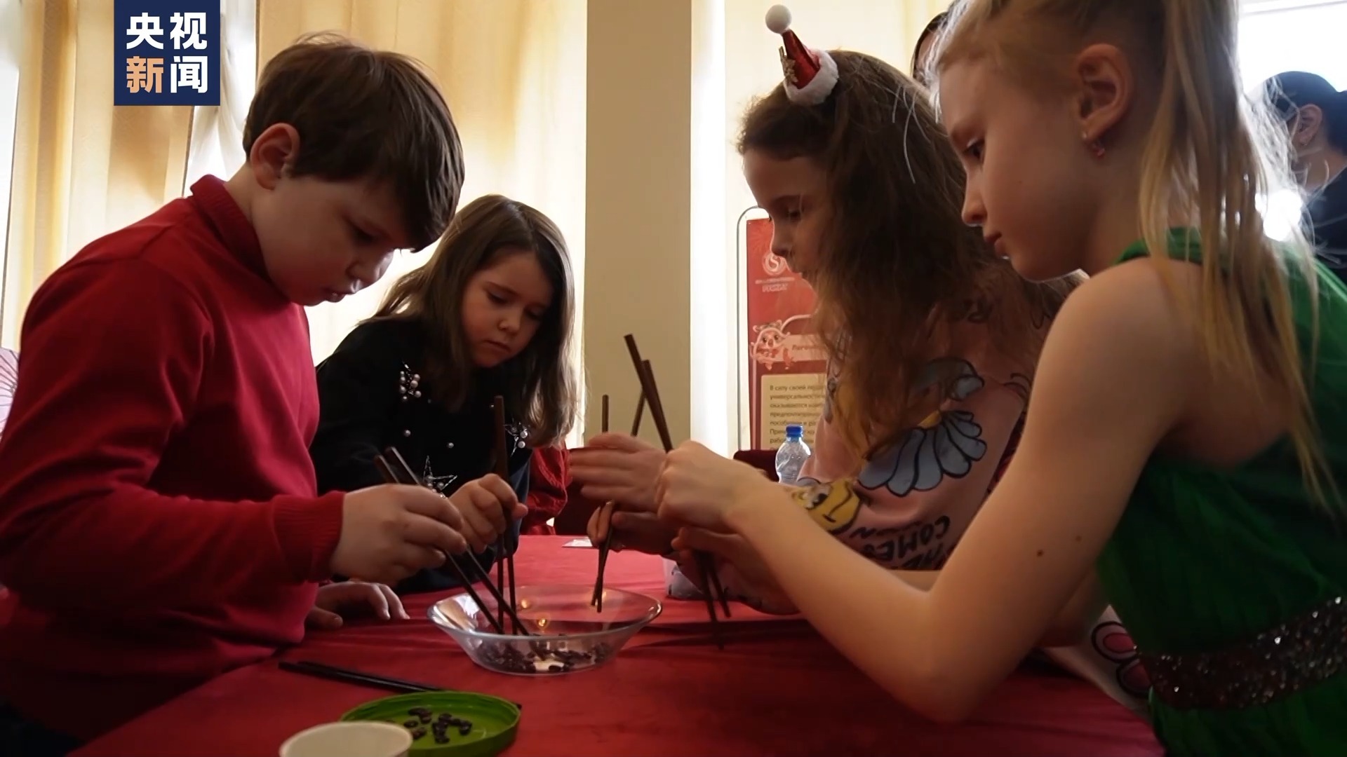 近日,俄罗斯莫斯科格罗布诺瓦文化宫举行中国文化体验活动,俄罗斯小朋友争先恐后体验写书法、画国画、拿筷子、品茶等多种活动。