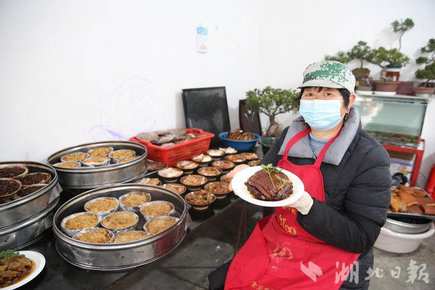 湖北日报客户端讯(向继华、章伟、徐丹)2月15日农历正月初六,当人们还沉浸在春节的氛围中时,湖北竹山县城关镇南门村的杨昔秀已开始在家里忙着切肉、装碗、蒸煮,赶做客户的合碗订单,案板上条子肉、小酥肉、粉蒸肉等半成品一排排的摆放整齐,炉火正旺,蒸笼里冒着热气,满屋飘香。