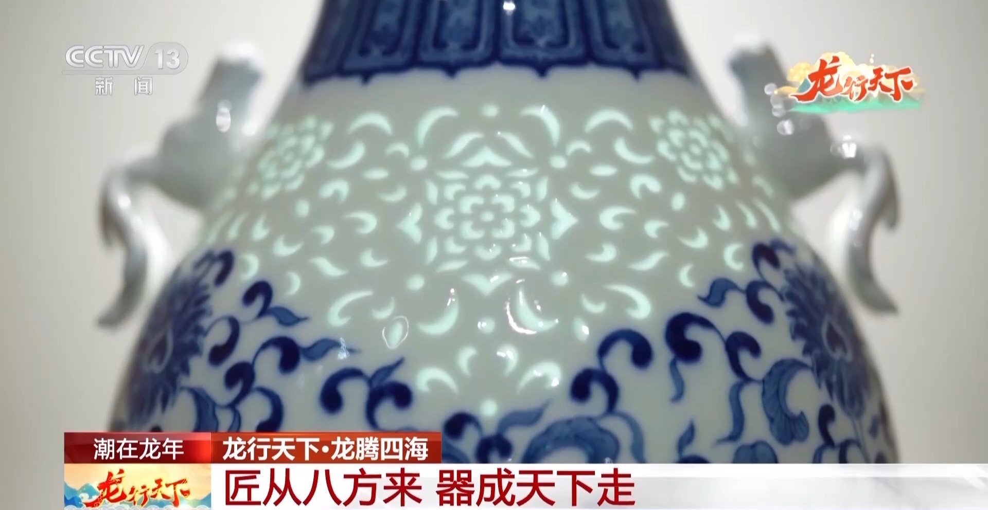 景德镇青花瓷画坯技艺非遗传承人 孙立新:主要是表现迎接新年龙年的这种快乐,我用的线条是中国明代的民间青花,还有元代的云的线条。