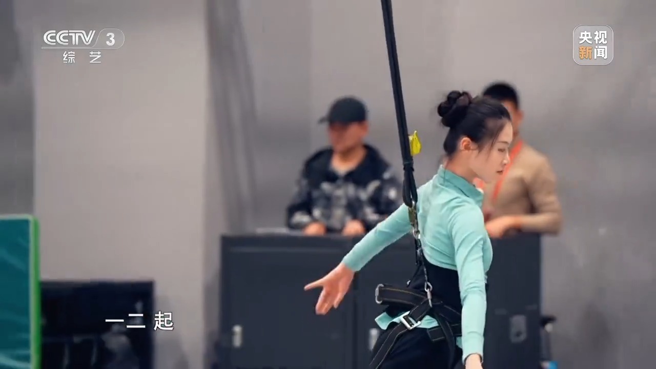 总台《2024年春节联欢晚会》舞蹈《锦鲤》演员 赵艺淘:发力方式不一样,因为如果我们跳正常古典舞的话,会用各个部分小关节或者是大关节去跳,上威亚的话,我们会使一种内力,内在的劲。