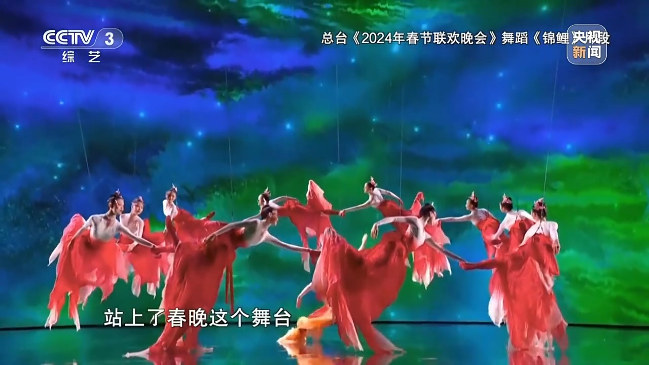 总台《2024年春节联欢晚会》舞蹈《锦鲤》演员 赵艺淘:我们第一次上台整个都蒙了,做完一遍下来感觉身体也会感知到一些动作反应,完全不一样。