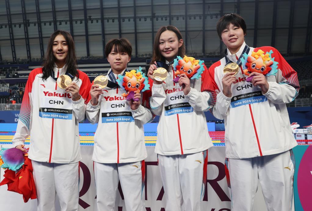 新华社多哈2月15日电(记者刘旸、周欣、孙哲)在15日进行的2024多哈游泳世锦赛女子4×200米自由泳接力决赛中,中国队凭借李冰洁在第三棒的出色发挥强势逆转,以7分47秒26的成绩力压英国队和澳大利亚队夺冠。