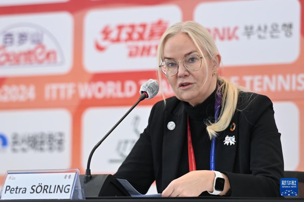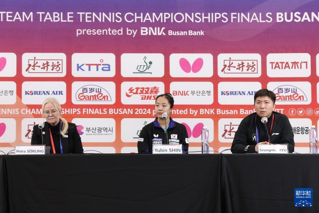 当日,2024年国际乒联釜山世界乒乓球团体锦标赛(决赛)新闻发布会在韩国釜山会展中心举行,国际乒联主席佩特拉·索林、釜山世乒赛团体赛组委会联合主席柳承敏、韩国运动员申裕斌等人出席。