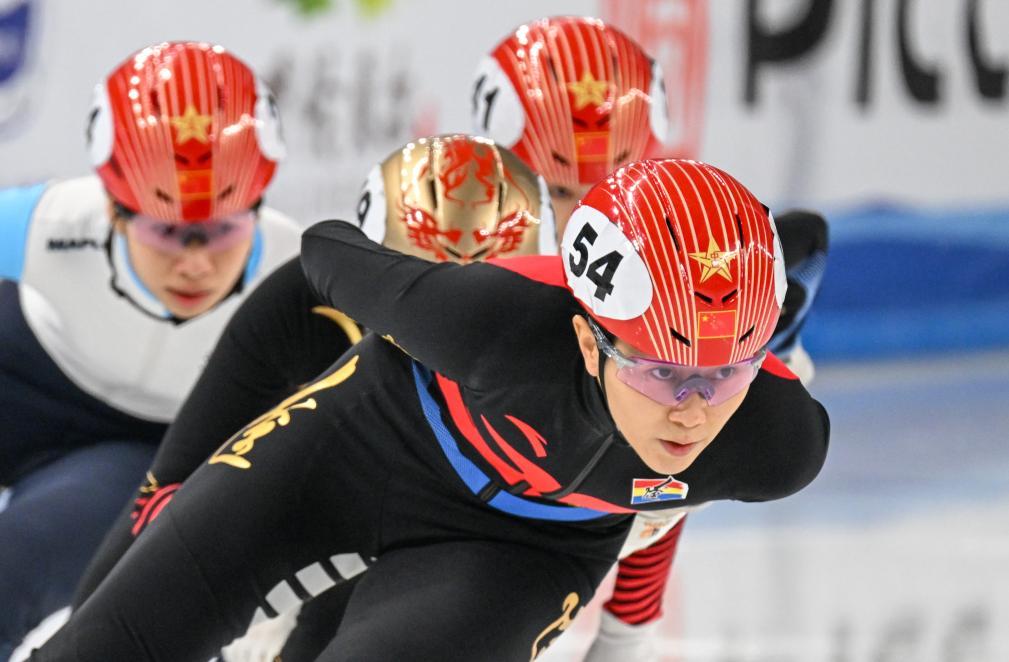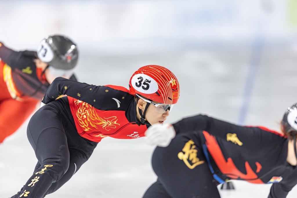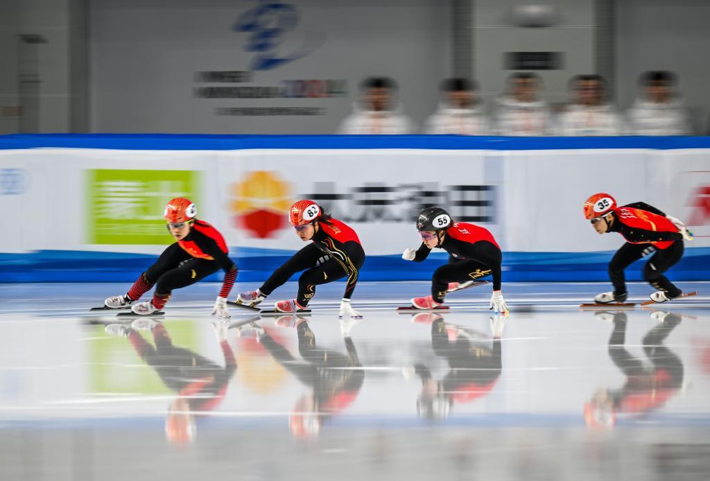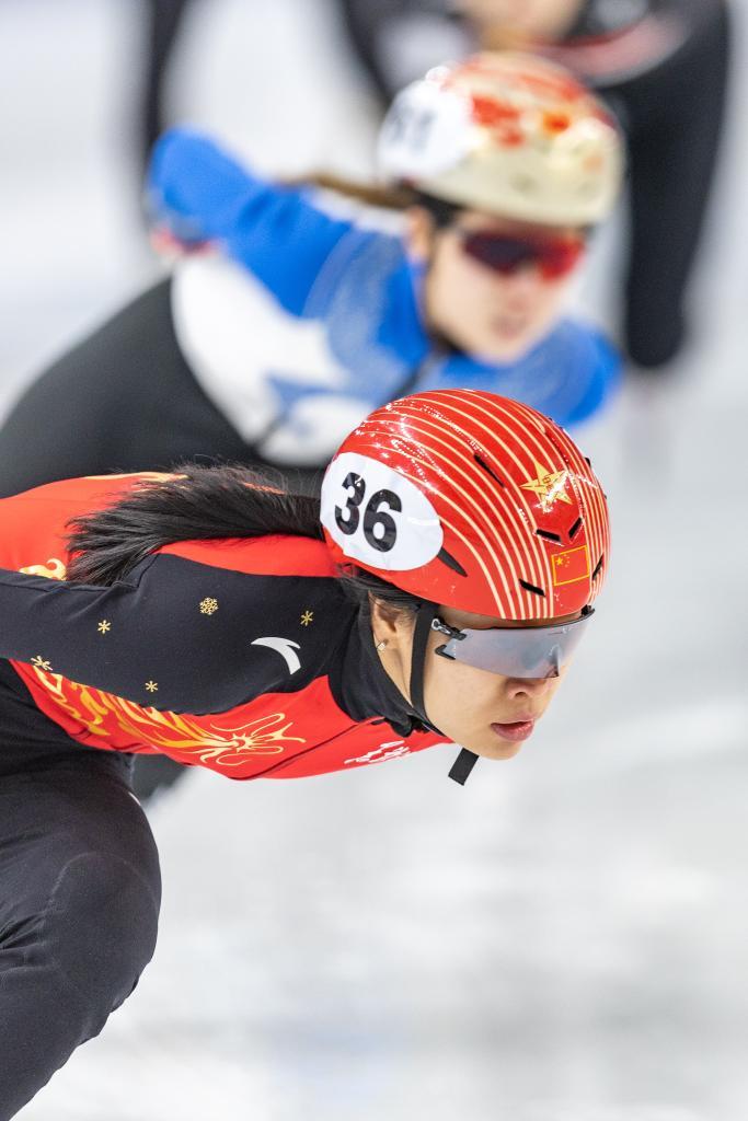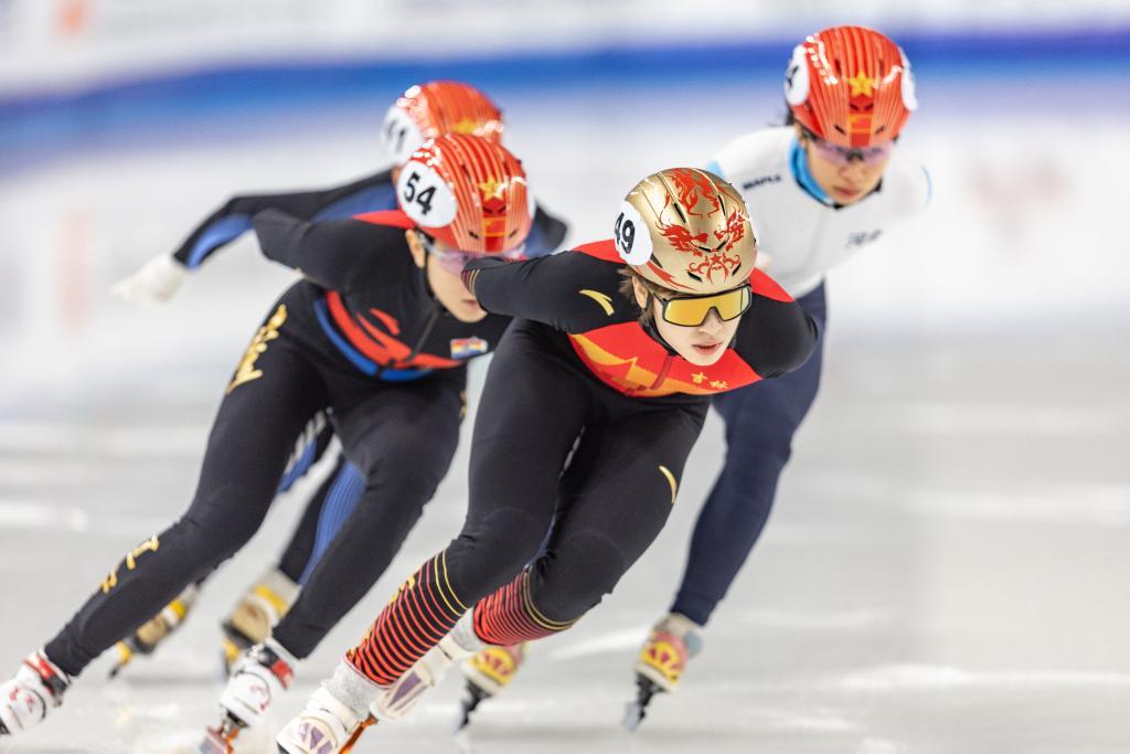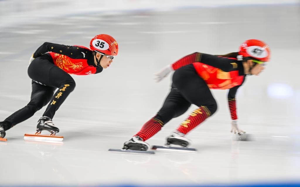 当日,第十四届全国冬季运动会短道速滑(公开组)女子1000米预赛在内蒙古呼伦贝尔市海拉尔区内蒙古冰上运动训练中心短道速滑馆举行。