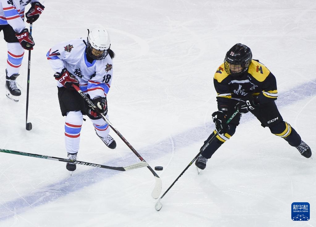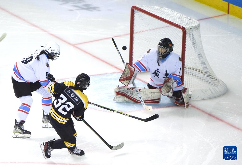 当日,在内蒙古冰上运动训练中心冰球馆举行的第十四届全国冬季运动会冰球项目女子青年组小组循环赛B组比赛中,辽宁队3比2战胜广东队。
