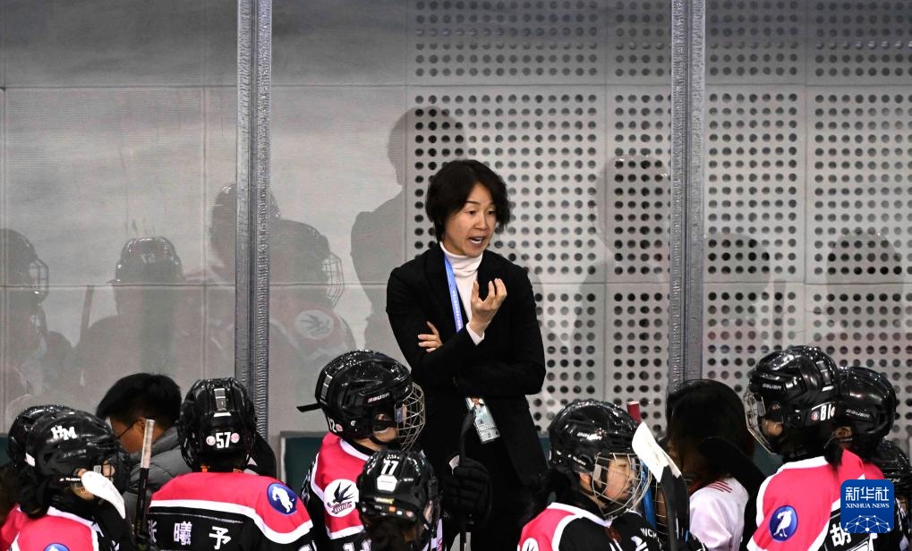 2月16日,北京队主教练张晶(上)在比赛间隙指导球员。新华社记者 邓华 摄
