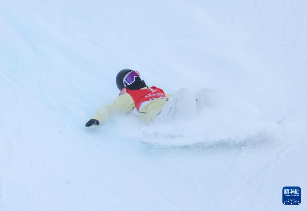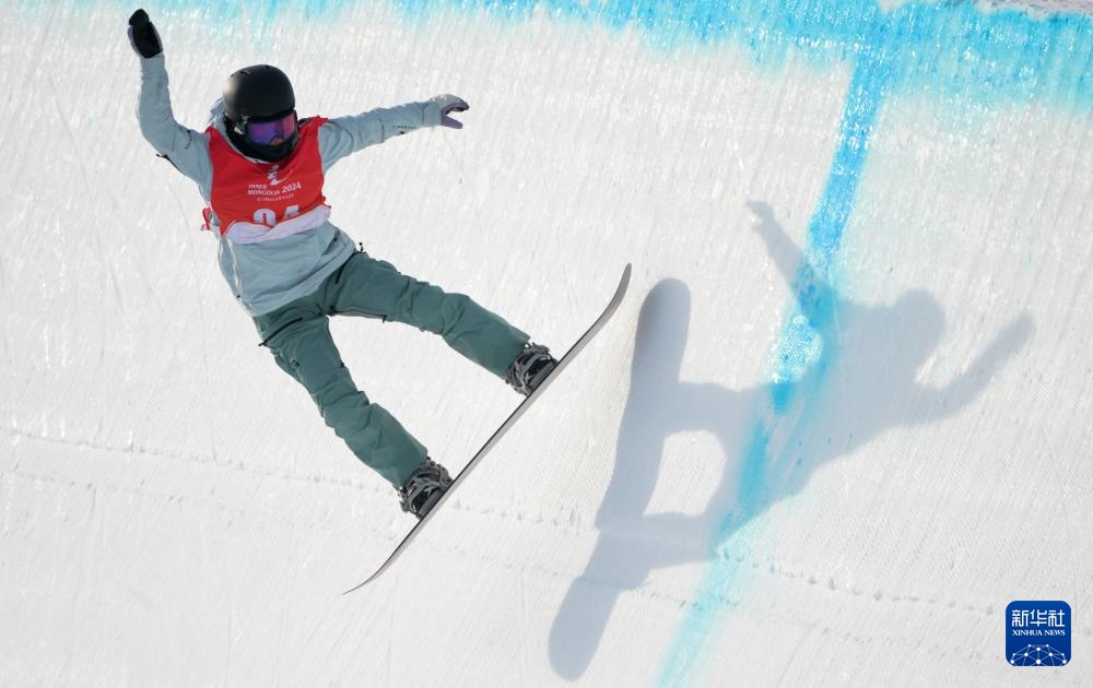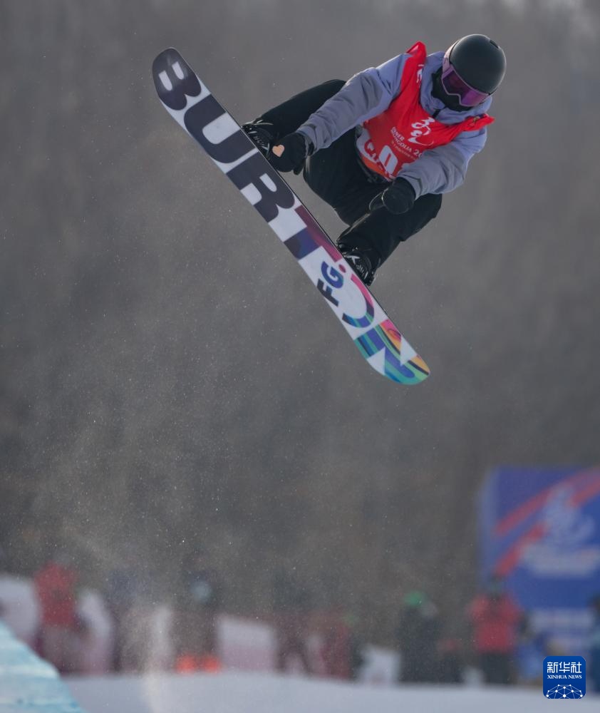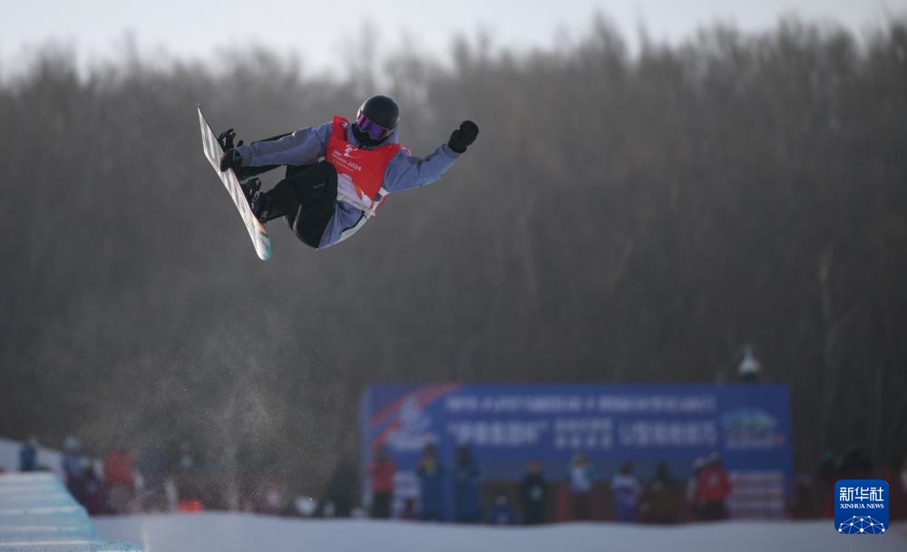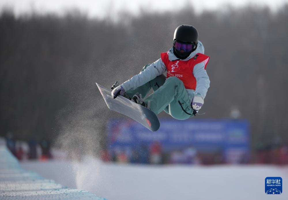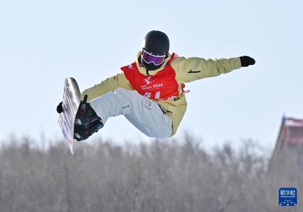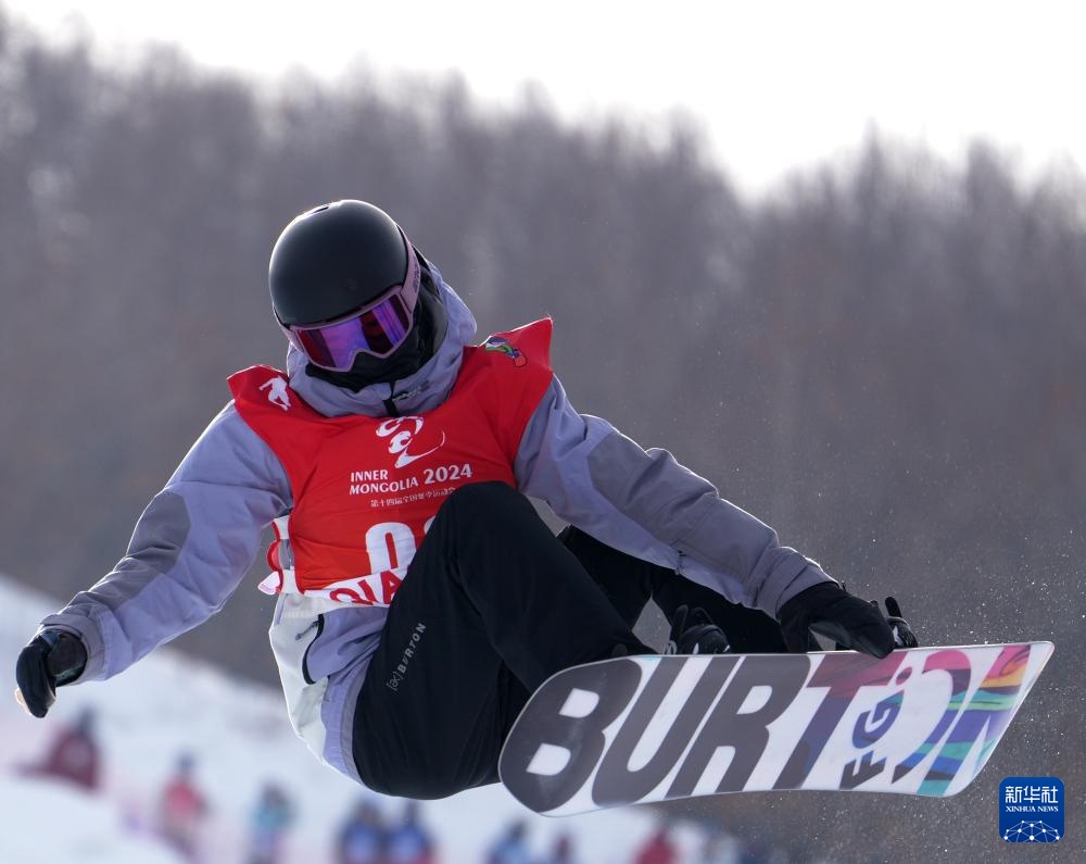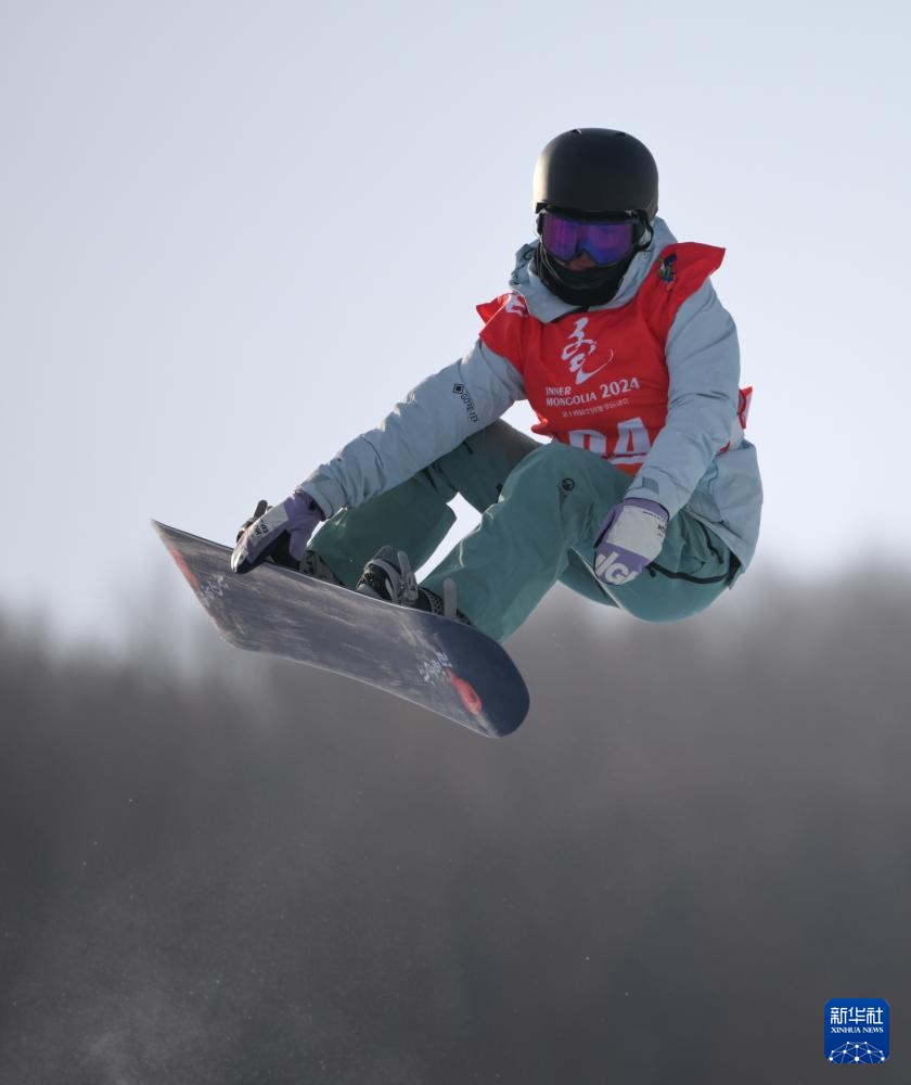 当日,第十四届全国冬季运动会单板滑雪青年组女子U型场地技巧决赛在内蒙古呼伦贝尔市扎兰屯金龙山滑雪场举行。