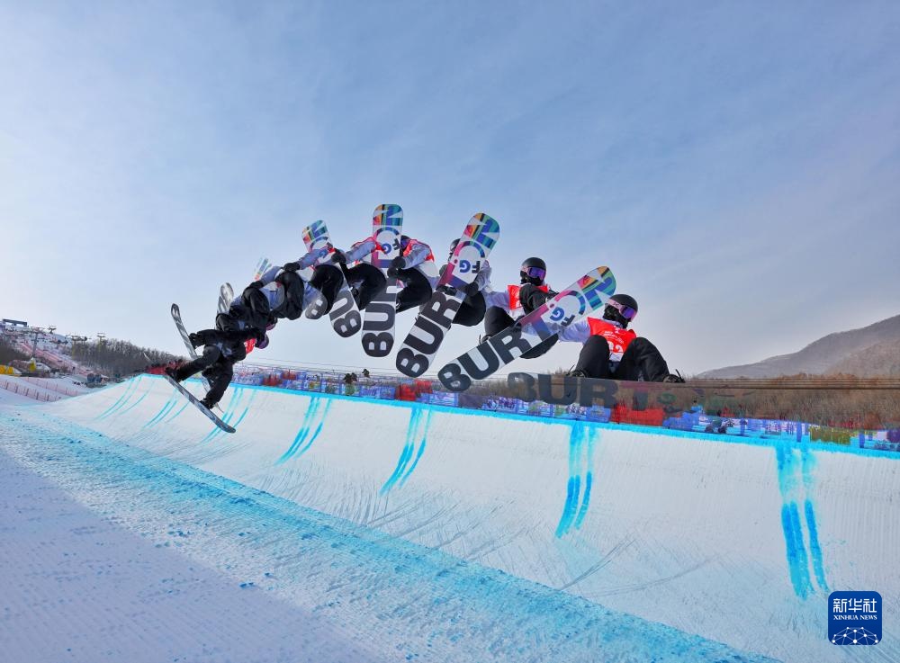 2月17日,河北队选手刘一波在比赛中。最终,她以86.00分的成绩获得冠军(多重曝光照片)。新华社记者 刘坤 摄