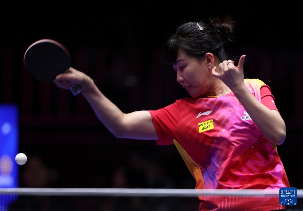 2月17日,王曼昱在第一盘比赛中回球。最终,她以3比0的比分战胜乌兹别克斯坦队选手马格迪耶娃。新华社记者 姚琪琳 摄