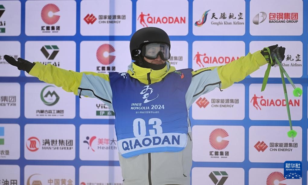 当日,第十四届全国冬季运动会自由式滑雪公开组男子大跳台比赛在内蒙古呼伦贝尔市扎兰屯金龙山滑雪场举行。