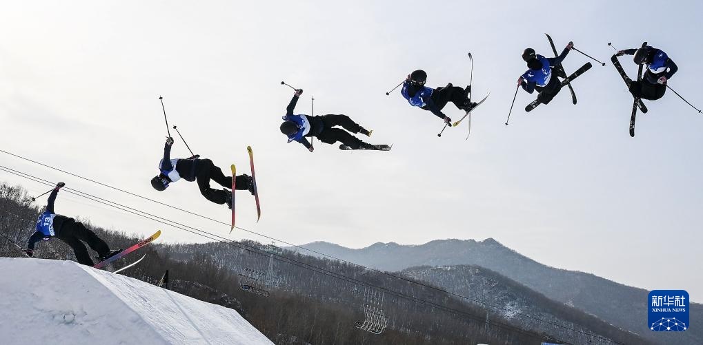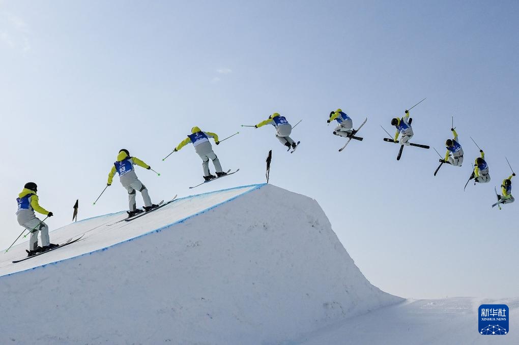 2月17日,内蒙古队选手杨昊在比赛中(多重曝光照片)。最终,他以174.75分的成绩获得冠军。新华社记者 谢剑飞 摄
