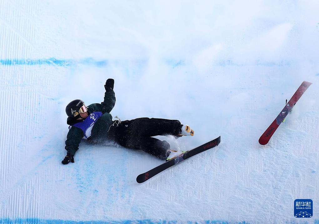 2月17日,黑龙江队选手朱俊昊在比赛中摔倒。最终,他获得第七名。新华社记者 王楷焱 摄