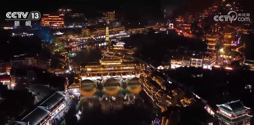 央视网消息:春节期间,位于湖南湘西土家族苗族自治州的凤凰县热闹非凡。假期前七天,当地累计接待游客43.38万人次,旅游收入超4.2亿元。