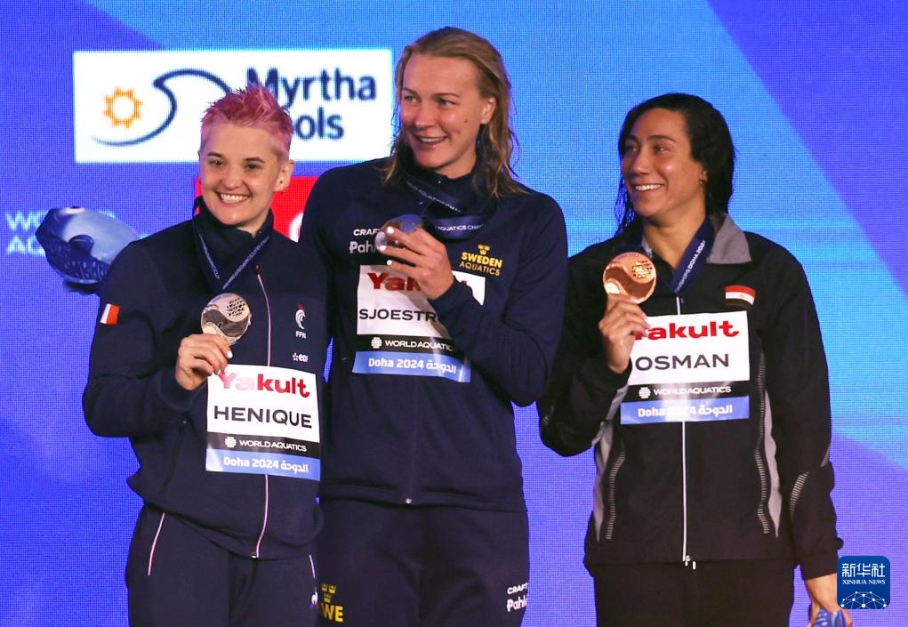 当日,在卡塔尔多哈举行的2024年世界游泳锦标赛游泳项目女子50米蝶泳决赛中,瑞典选手舍斯特伦以24秒63的成绩获得冠军。