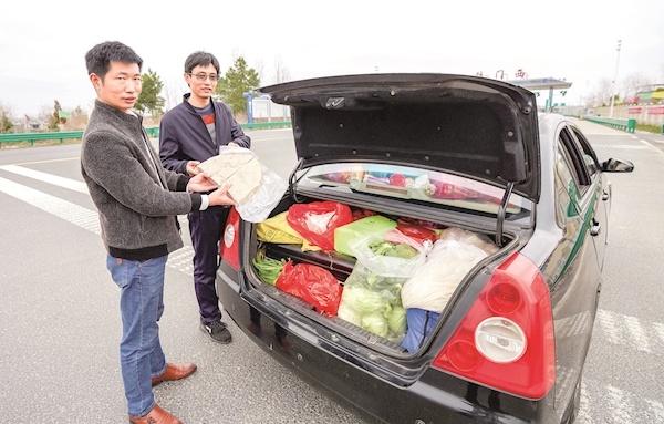 在武汉做装修的周先生,正月初八从老家枣阳返汉。临行前,周先生的父母把自家种的蔬菜塞满了后备箱。带上车,就像是把父母的爱带了回来。