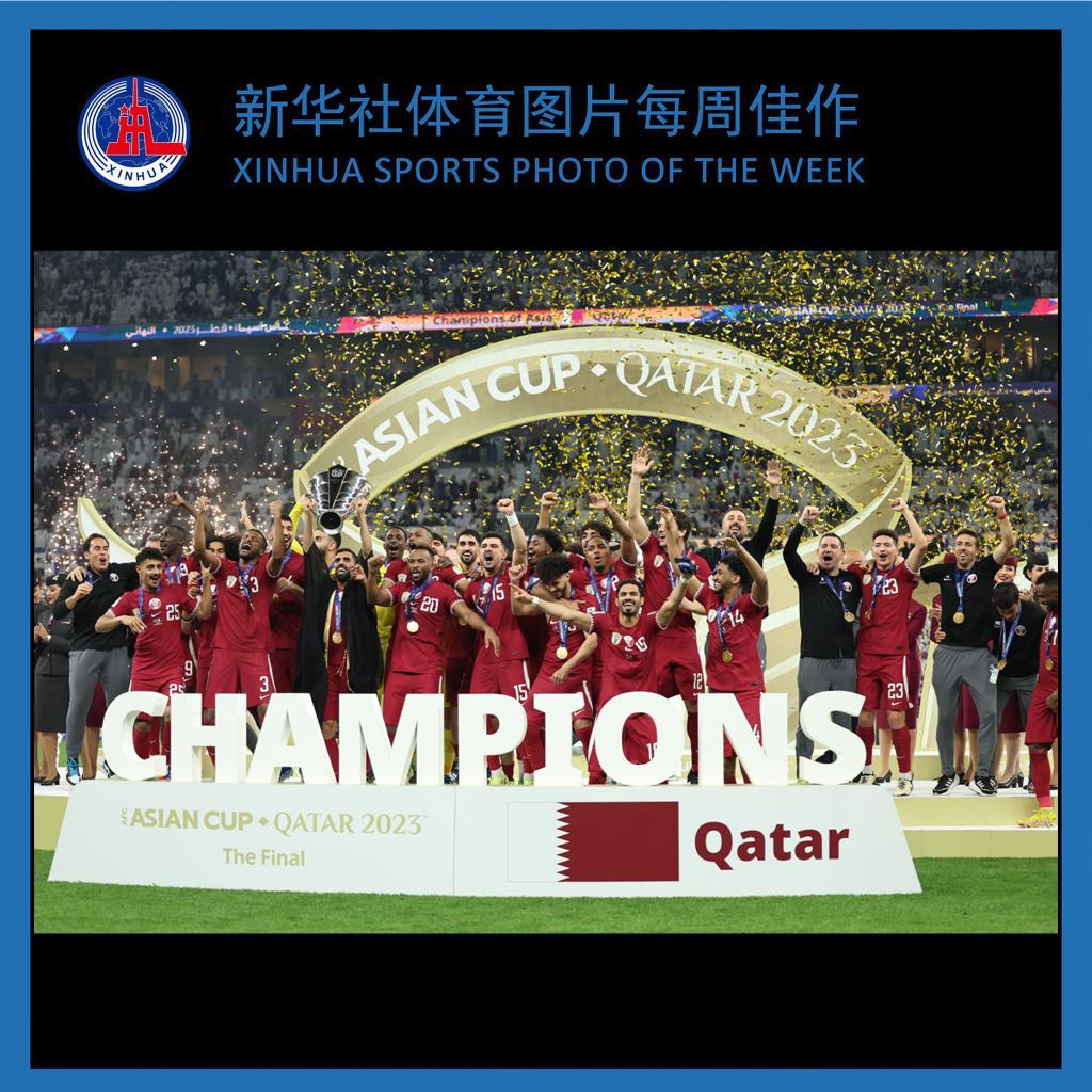 当日,在卡塔尔卢赛尔体育场举行的男足亚洲杯决赛中,卡塔尔队3比1战胜约旦队,夺得冠军。