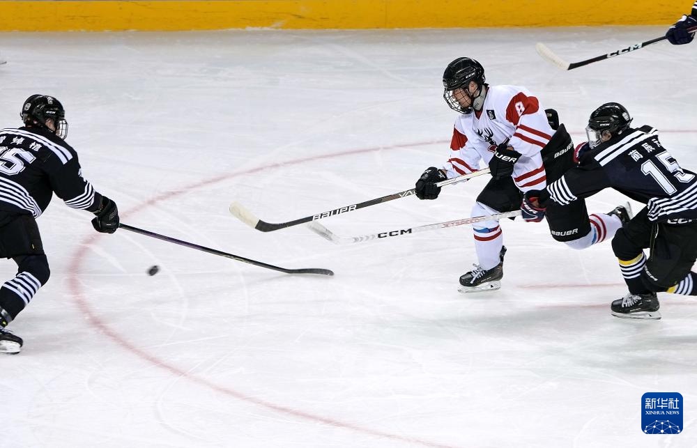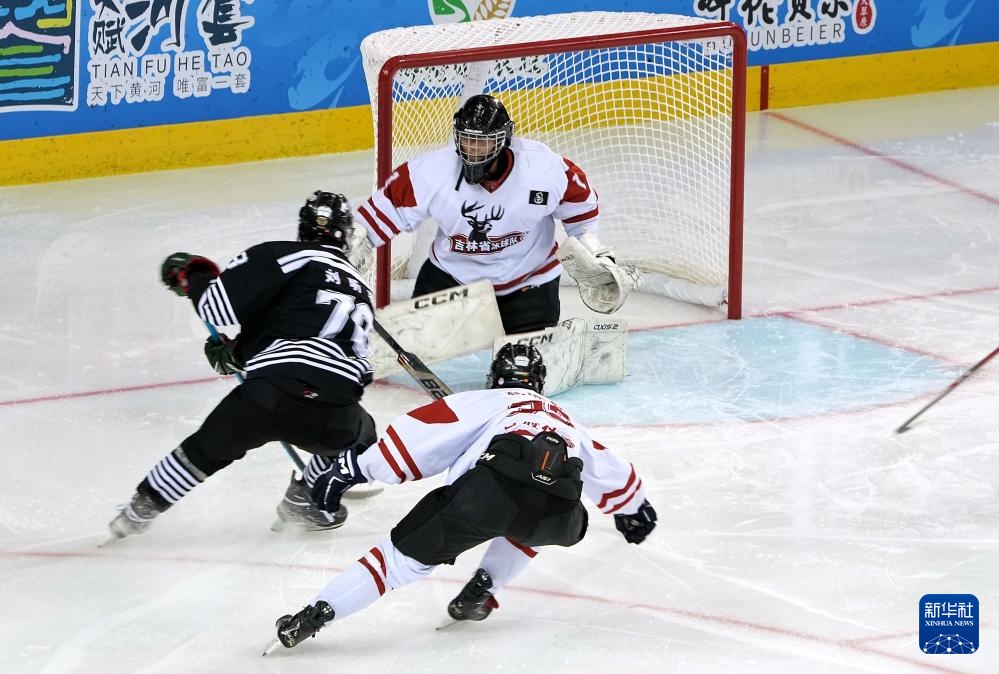 当日,在内蒙古冰上运动训练中心冰球馆举行的第十四届全国冬季运动会青年组男子冰球比赛中,内蒙古队5比2战胜吉林队。