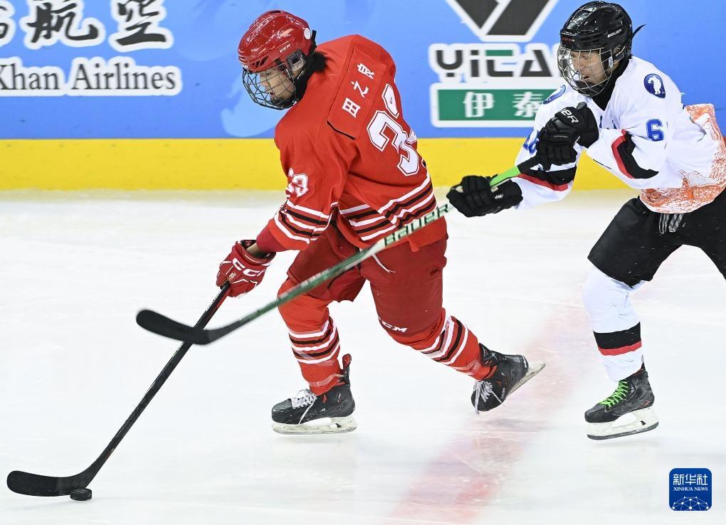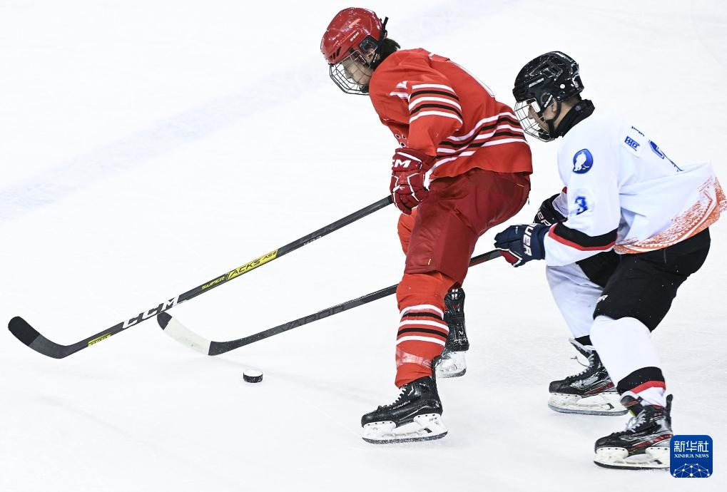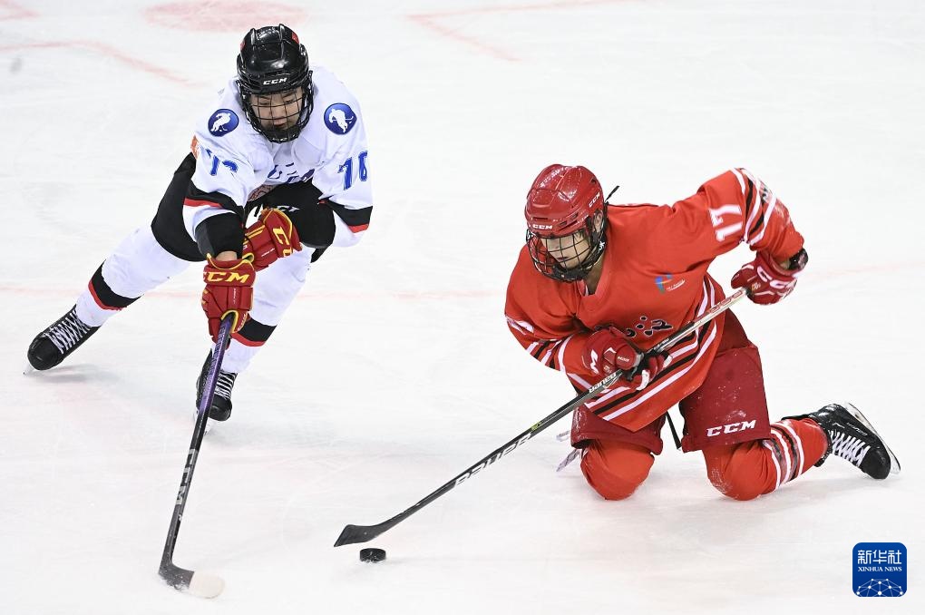 2月18日,黑龙江队球员王一诺(中)与北京队球员孟凡珂在比赛中争球。新华社记者 邓华 摄