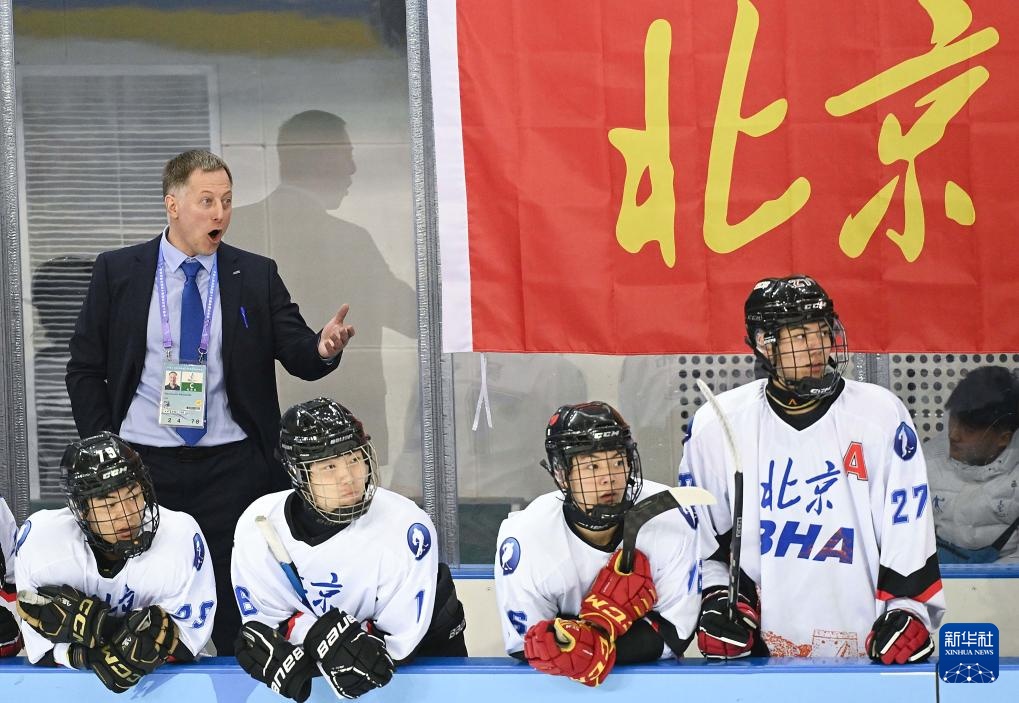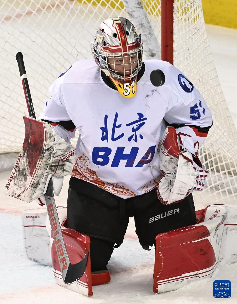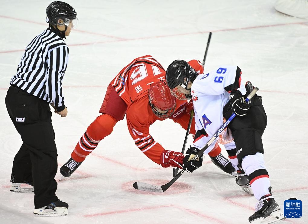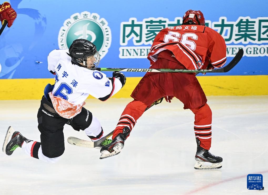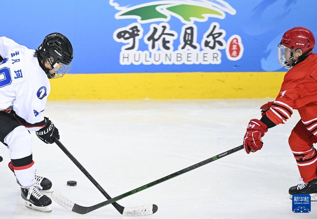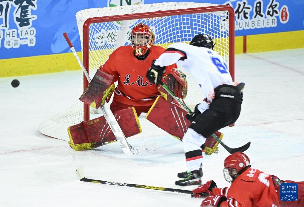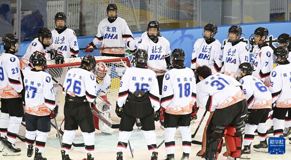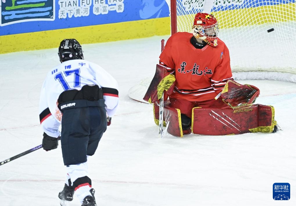 当日,在内蒙古冰上运动训练中心冰球馆举行的第十四届全国冬季运动会冰球项目男子青年组小组循环赛A组比赛中,北京队5比1战胜黑龙江队。