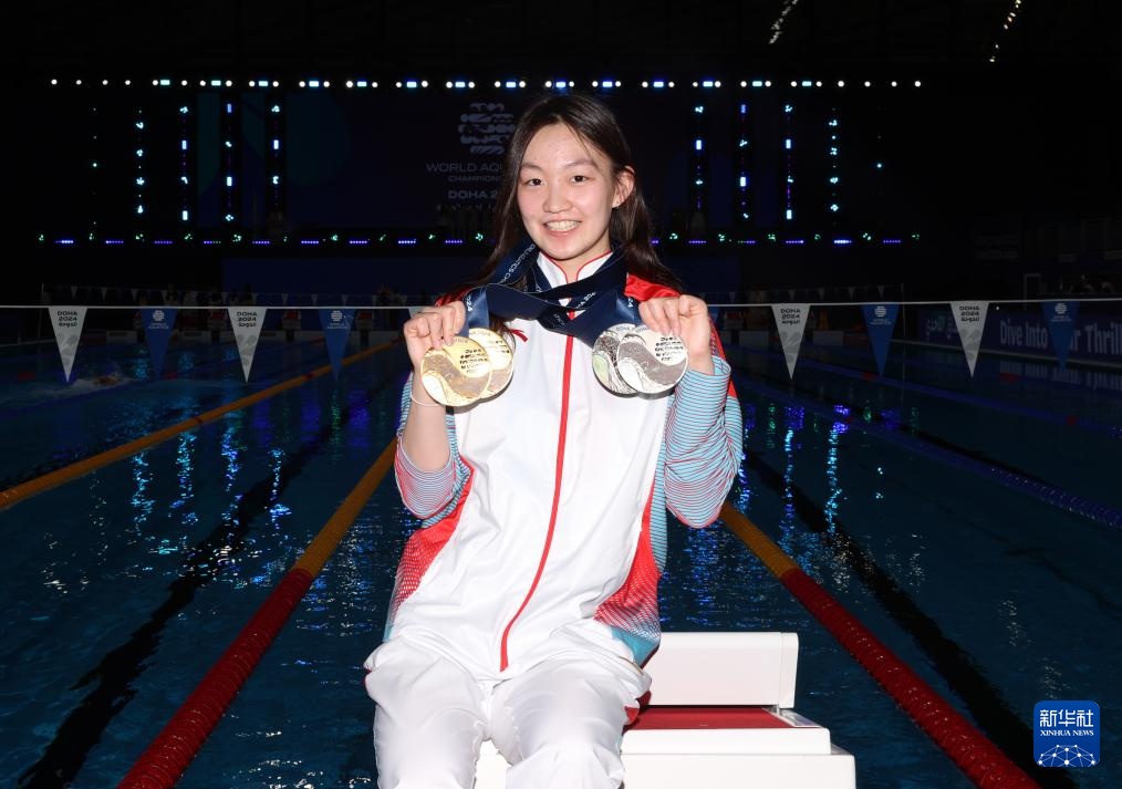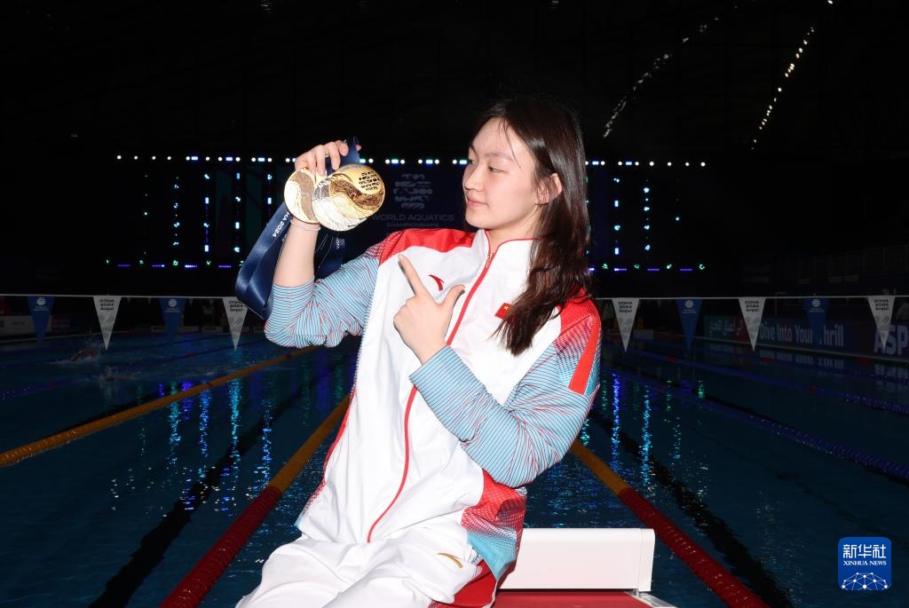2月18日,中国游泳队成员李冰洁留影。新华社记者 雒圆 摄
