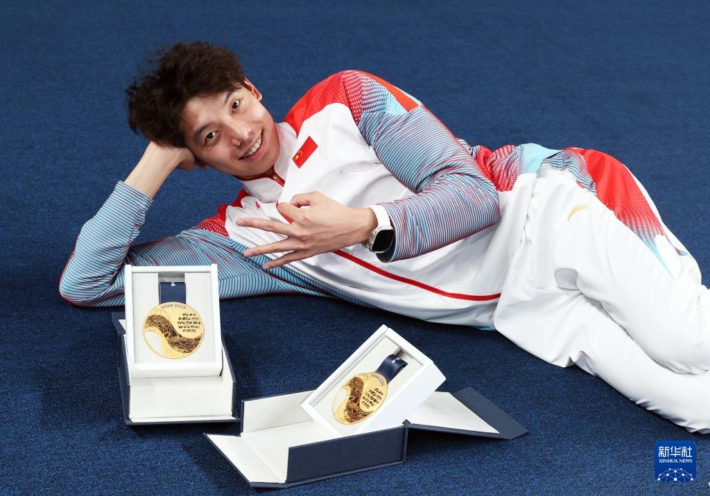 2月18日,中国游泳队成员季新杰留影。新华社记者 雒圆 摄