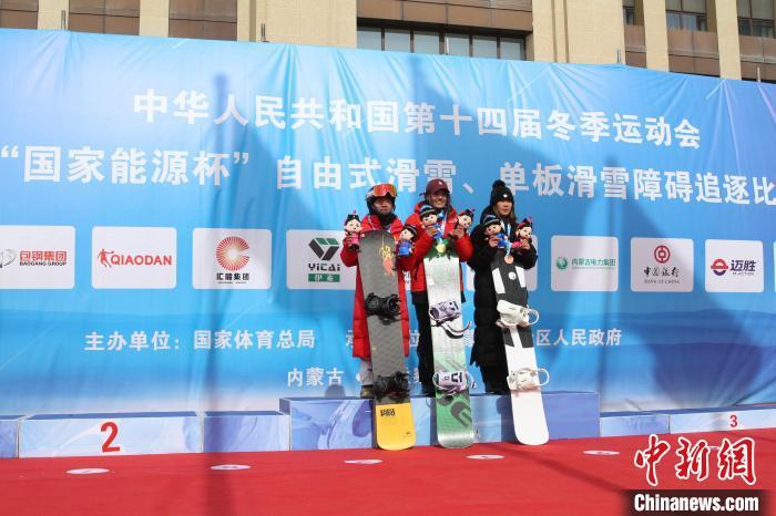中新网乌兰察布2月19日电(记者 张林虎)“感觉还是有点累,其余的还好,对结果我很满意,这也弥补了之前冬奥会受伤未上场的遗憾。”19日,在内蒙古自治区乌兰察布凉城滑雪场进行的“十四冬”单板滑雪青年组女子障碍追逐赛中,西藏队的拥青拉姆夺得冠军。