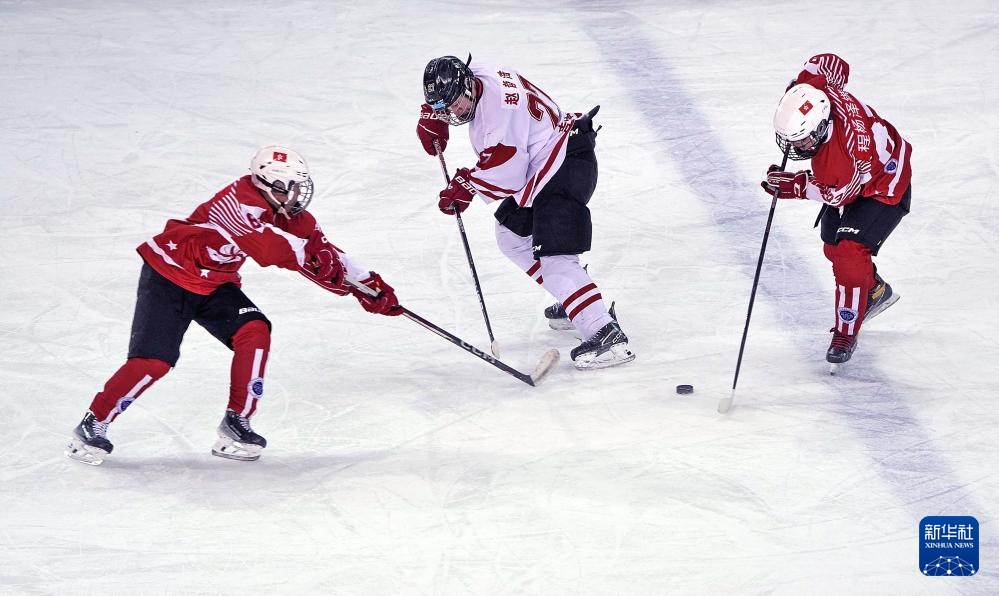 当日,在第十四届全国冬季运动会男子冰球青年组循环赛B组比赛中,香港队9比3战胜吉林队。
