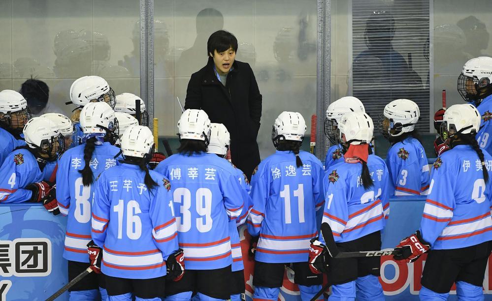 2月21日,广东队主教练齐雪婷(上)在比赛间隙布置战术。新华社记者 邓华 摄