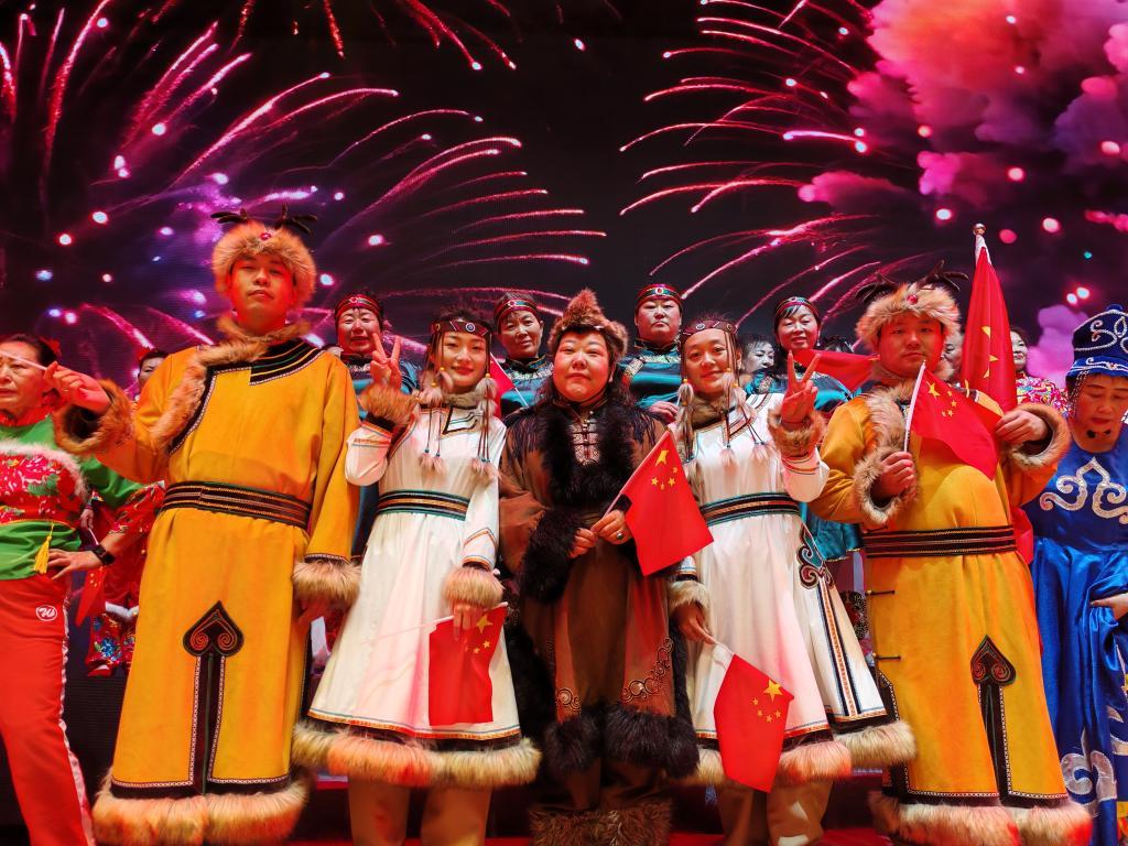 鄂伦春族民众参加“喜迎十四冬”扎兰屯市冬季“村晚”。受访者供图