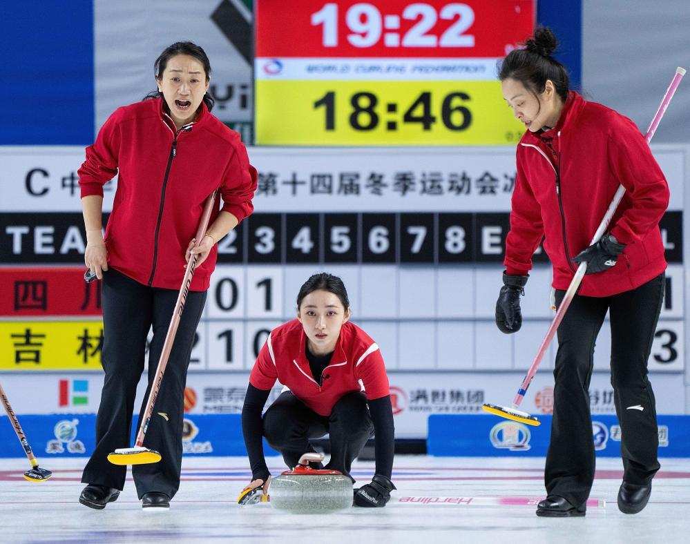 新华社呼和浩特2月22日电(记者戴锦镕、刘艺淳)22日,第十四届全国冬季运动会冰壶公开组男子和女子循环赛均进行了第二、第三轮比赛,中国女子冰壶黄金一代队员王冰玉、周妍、岳清爽代表四川队出战。