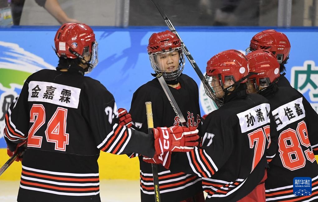 当日,在内蒙古冰上运动训练中心冰球馆举行的第十四届全国冬季运动会冰球项目男子青年组小组循环赛A组比赛中,黑龙江队7比2战胜四川队。