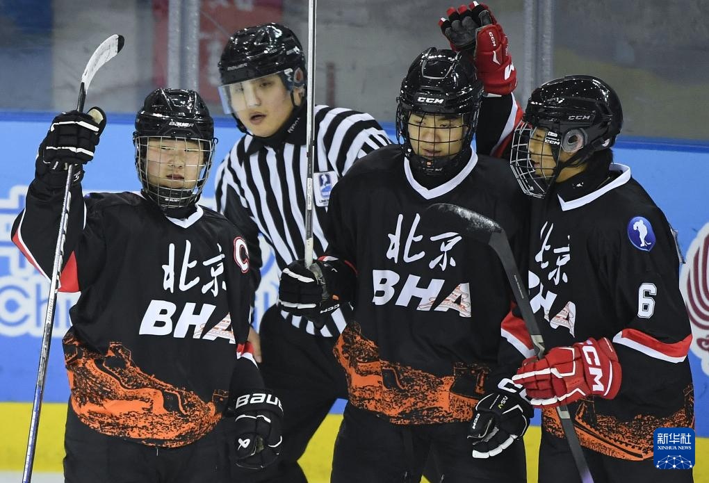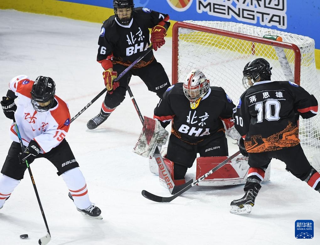 当日,在内蒙古冰上运动训练中心冰球馆举行的第十四届全国冬季运动会冰球项目男子青年组小组循环赛A组比赛中,北京队3比1战胜陕西队。