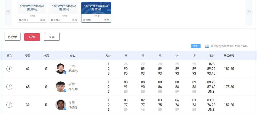 他并未受到失误的影响,第二跳和第三跳动作均展现了较为舒展的空中姿态并丝滑落地,分别得到89.20分和93.40分,逆转摘得金牌。