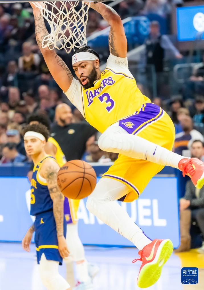 2月22日,湖人队球员安东尼·戴维斯在比赛中扣篮。新华社发(董旭东摄)