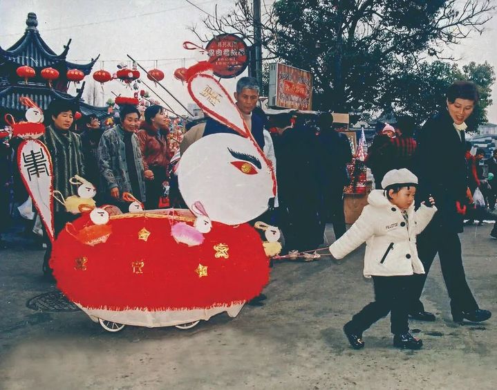 上世纪90年代孩子拉着兔子花灯欢快奔走 图源:南京秦淮区文化馆