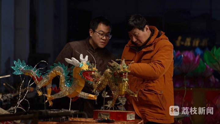 在秦淮灯会青年传承人顾传敬的记忆里,年味更是与花灯紧密相连。从五六岁起,他就跟在父亲顾业亮身边学看制作花灯,每当父亲开始为一年一度的灯会忙碌起来时,也就意味着春节临近了。