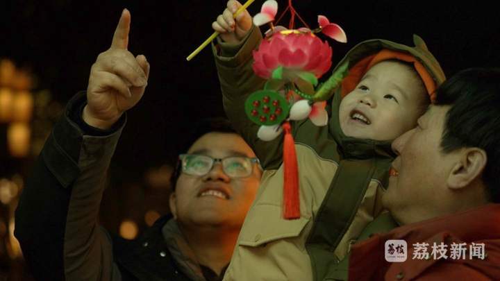 灯月遥相望,人间共良辰。游船花灯编织成如梦似幻的璀璨夜景,南京城的年味流淌在秦淮灯彩的阑珊处,最终落在了每一个人的心里。