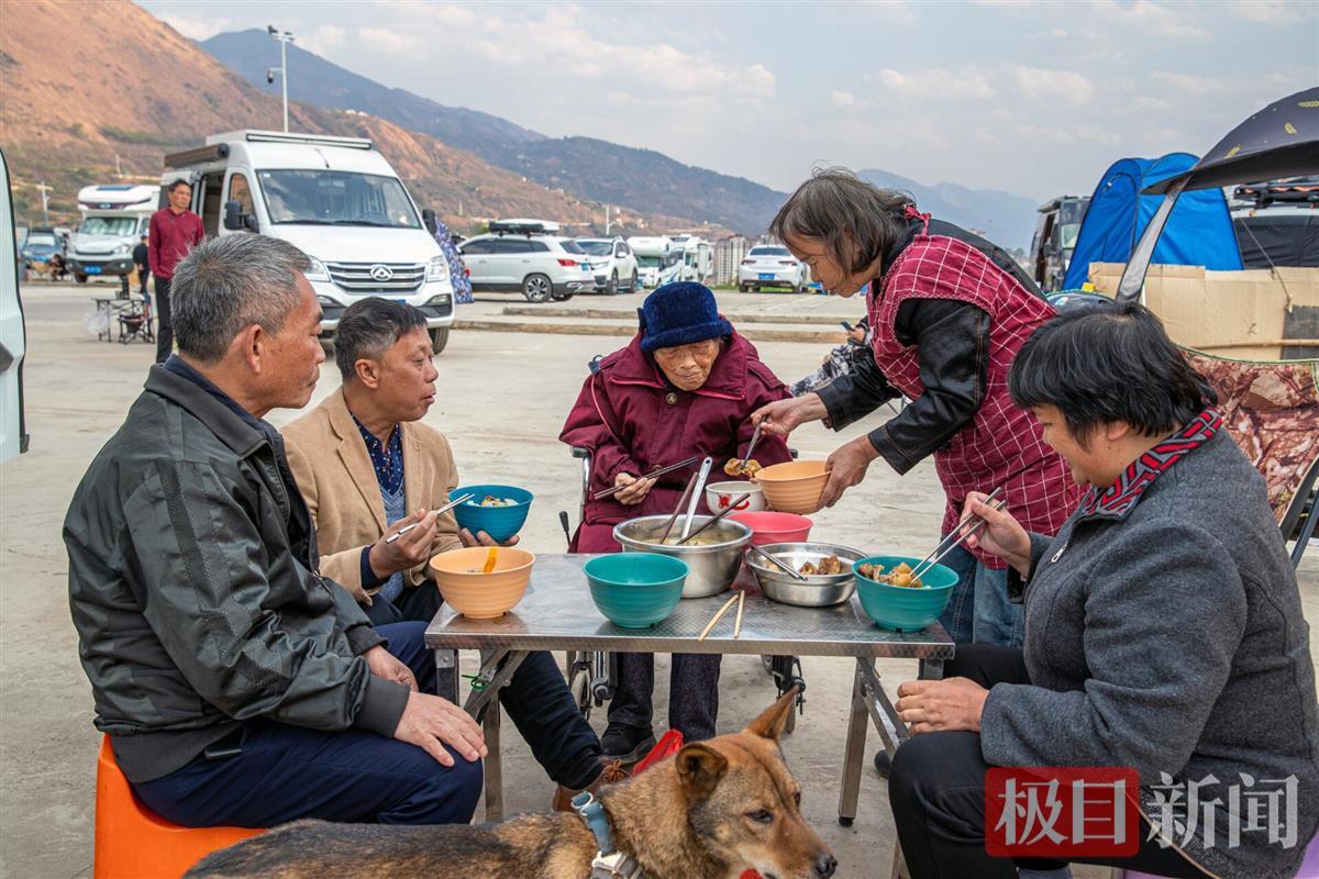 2月23日中午,云南巧家县栗喉蜂虎房车营地里,王先生正和妻子、哥哥、嫂子以及百岁母亲一起吃饭。老太太如此高龄,还能在儿子儿媳的陪伴下出门自驾游,着实让房车营地里的其他游客羡慕。