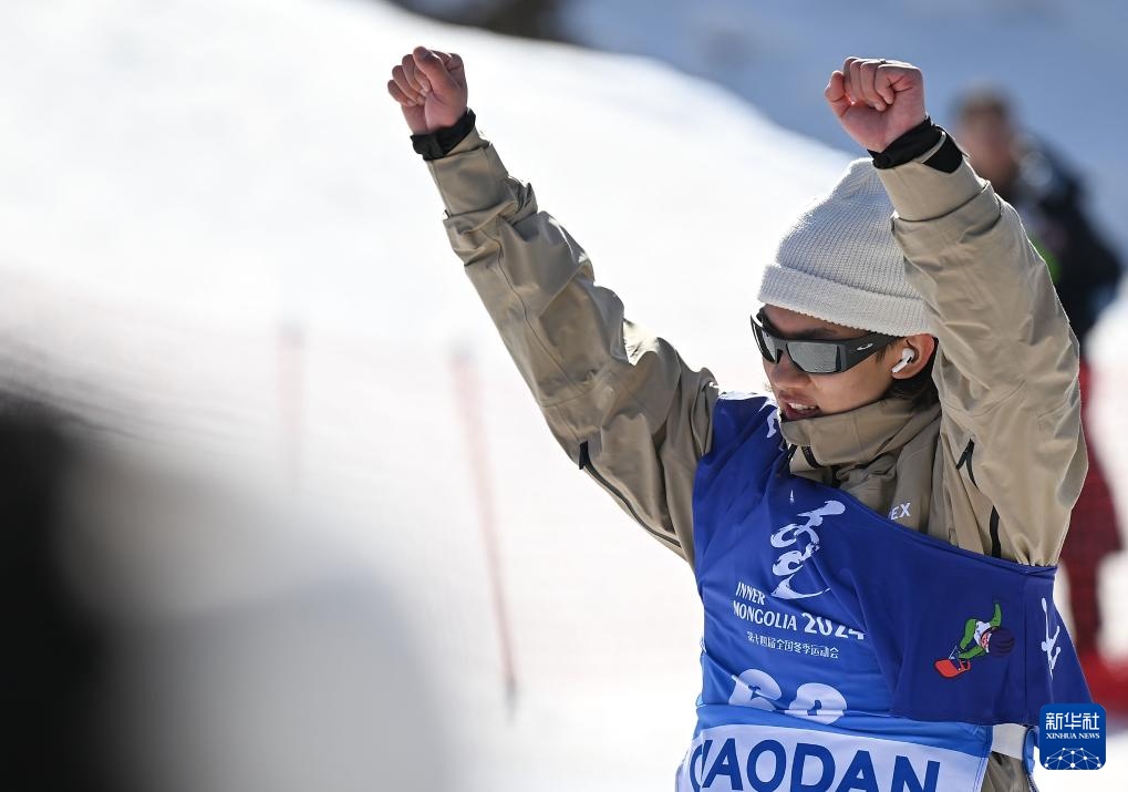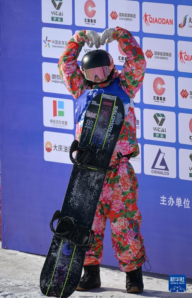 2月24日,内蒙古队选手倪丙绅在比赛中向观众比心。新华社记者 贝赫 摄