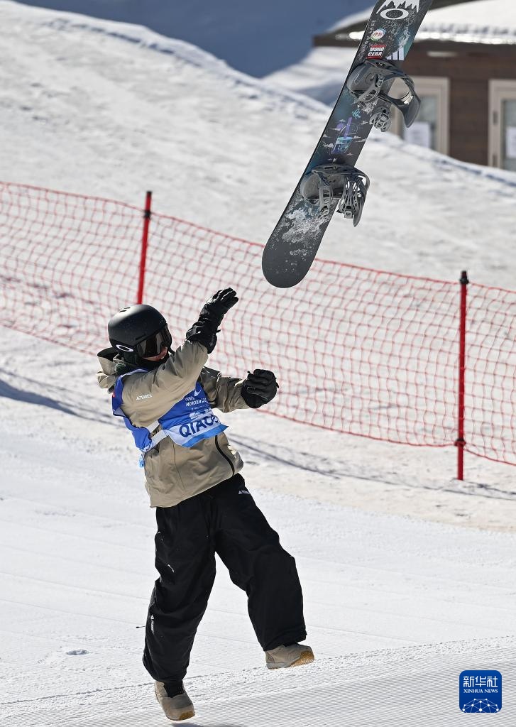 2月24日,山西队选手苏翊鸣在比赛中抛出雪板。新华社记者 贝赫 摄