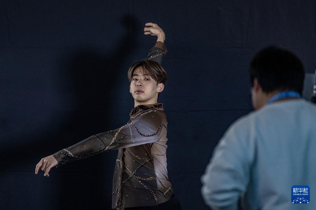 2月20日,香港花样滑冰队队员赵向黎在录制“十四冬”赛前运动员介绍视频。
