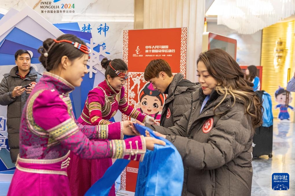 2月22日,酒店工作人员向香港花样滑冰队成员献上哈达。