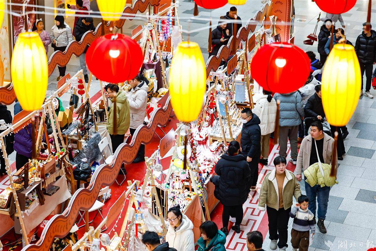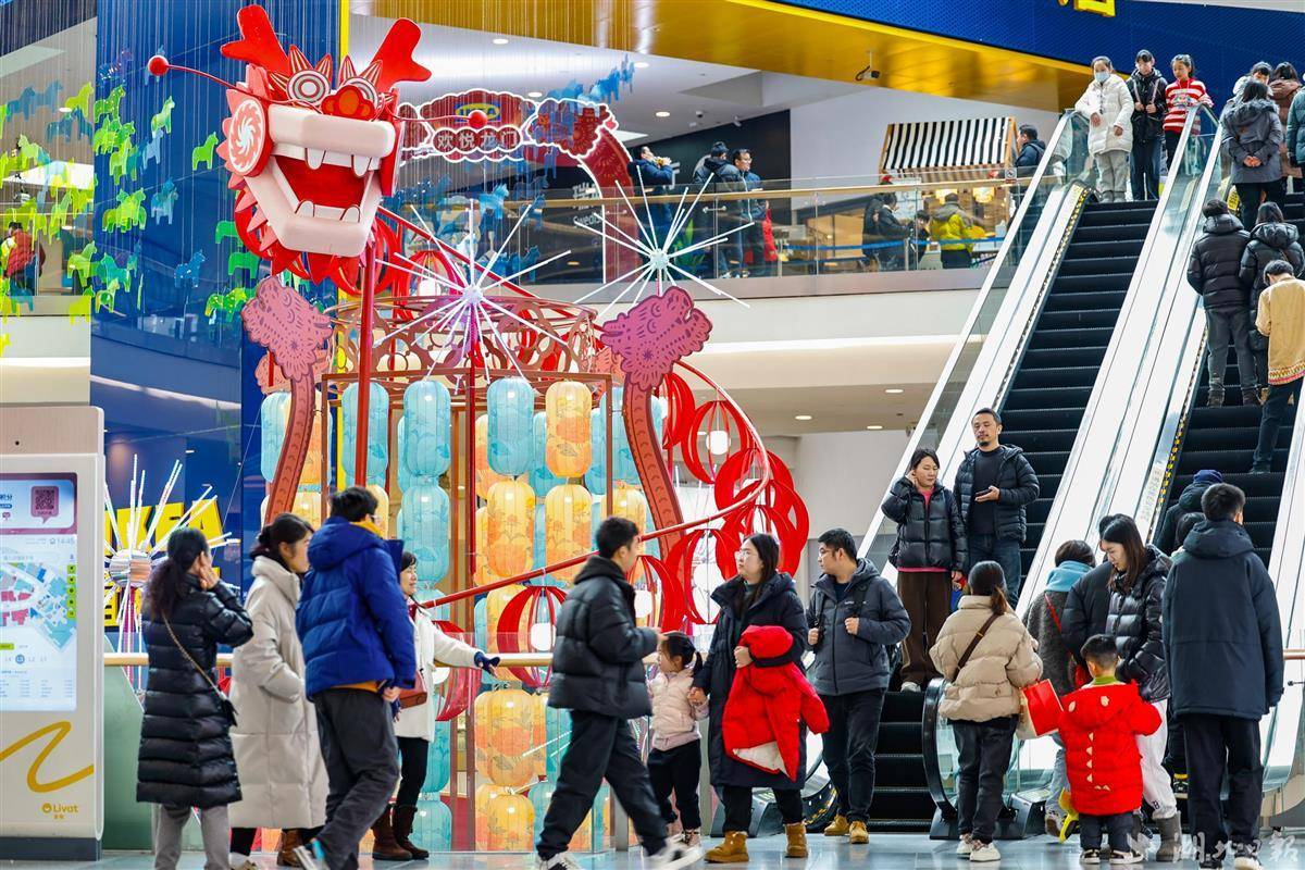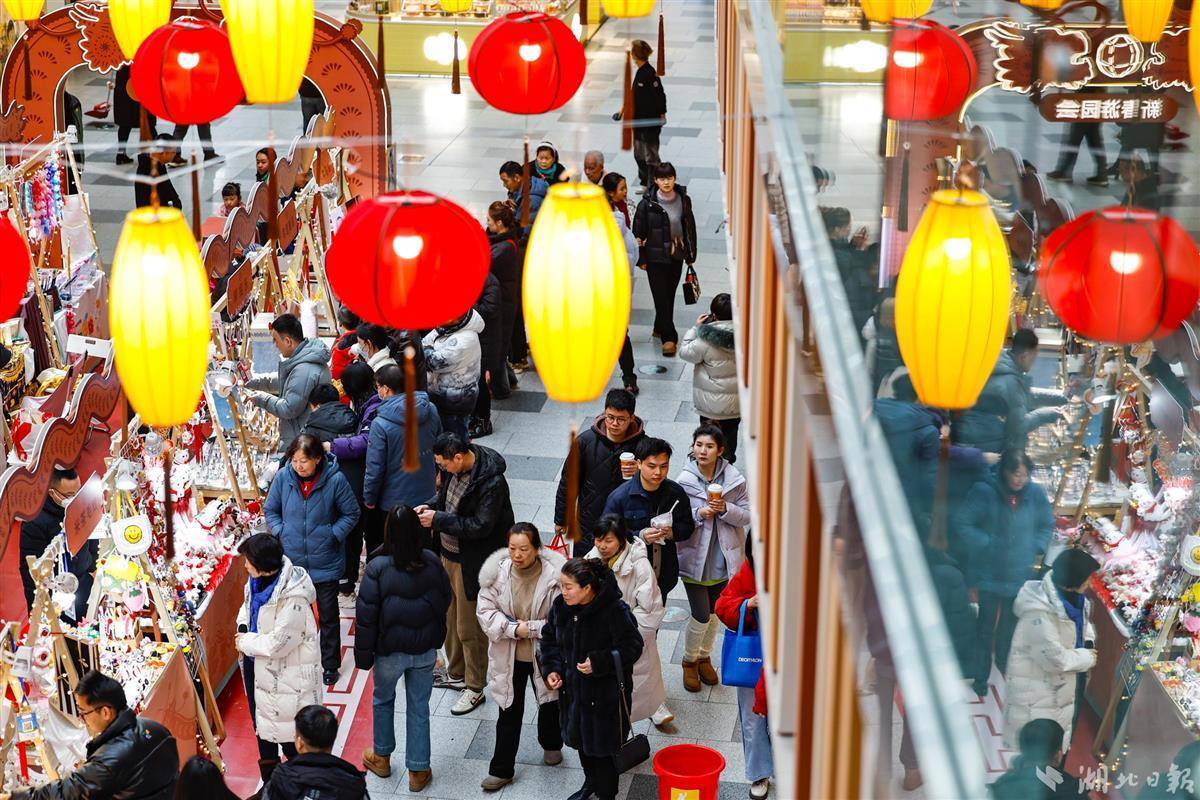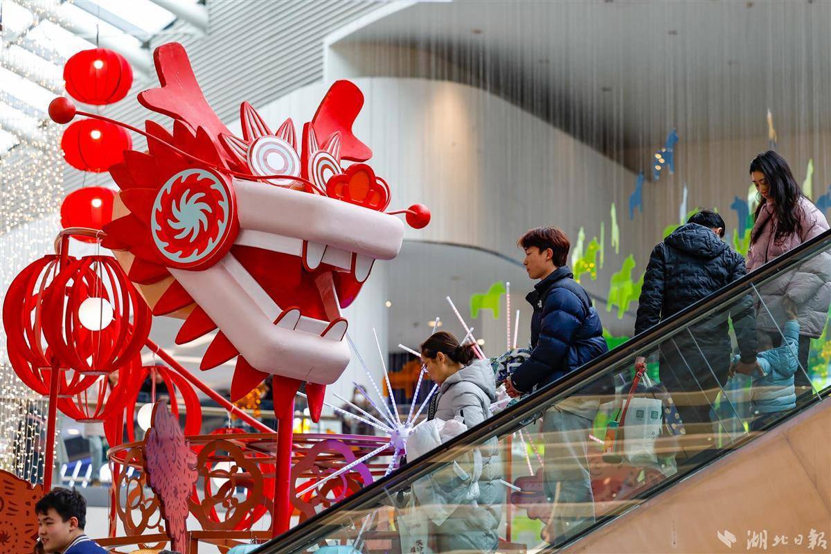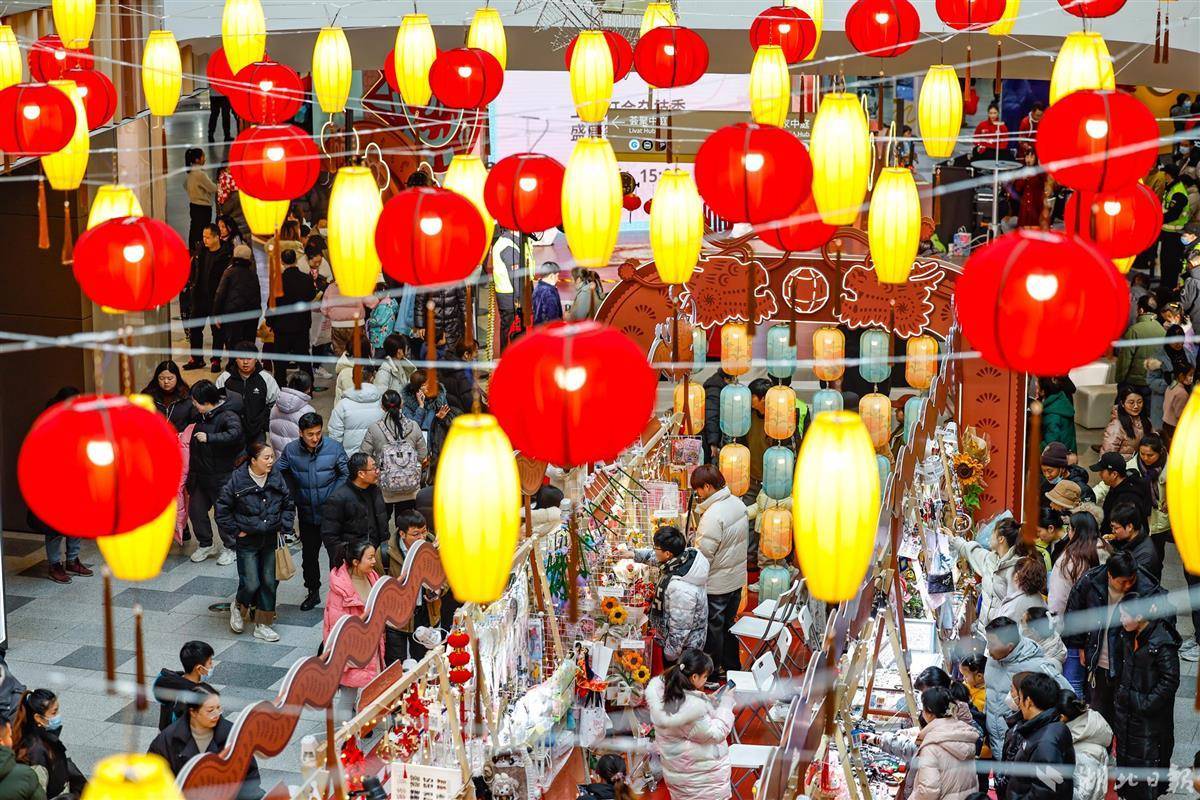 2024年2月24日,正是农历正月十五元宵佳节,在武汉宜家荟聚商场内,前来逛街消费的市民络绎不绝。元宵节武汉各大商圈消费市场延续春节消费热潮,新春市集琳琅满目,猜灯谜和各种民俗活动穿插其间,人气十足。(湖北日报全媒记者 倪娜 摄)