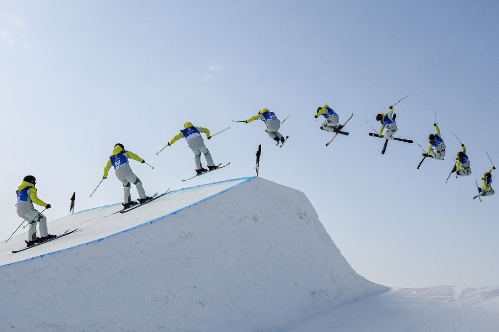 2月17日,杨昊在自由式滑雪公开组男子大跳台比赛中(多重曝光照片)。新华社记者 谢剑飞 摄