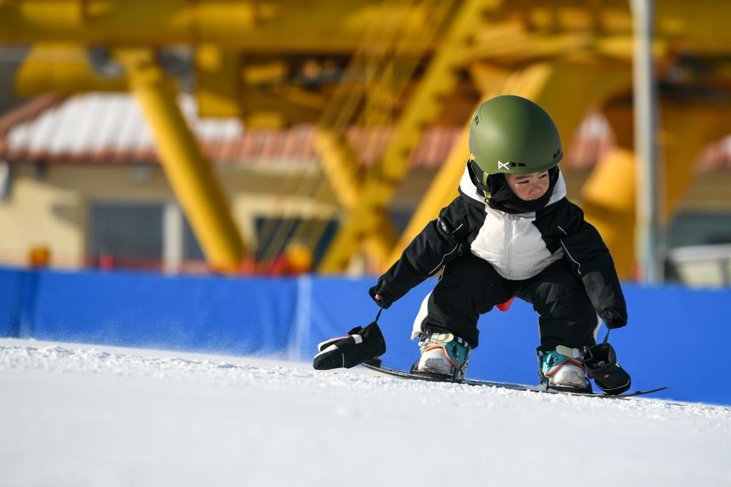 2022年1月7日,小枣在扎兰屯市金龙山滑雪场练习单板滑雪。新华社记者 贝赫 摄