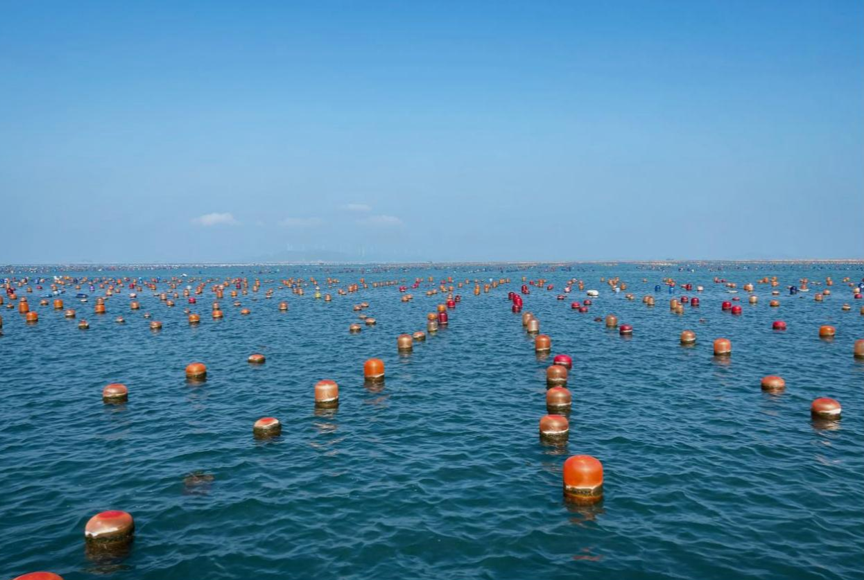 在汕头市南澳县深澳镇走马埔村的海面上,漂浮着大片彩色生态浮球方阵,宛若一片浪漫的“彩虹海”。这些浮球方阵是南澳养殖生蚝的专用设施,采用PET材质,既推动了生蚝养殖产业发展,也为海洋生态保护作出贡献。如今,走马埔村海域生态养殖基地,已成为粤东地区最大的无公害水产品养殖基地,全镇年产值约2.5亿元。
