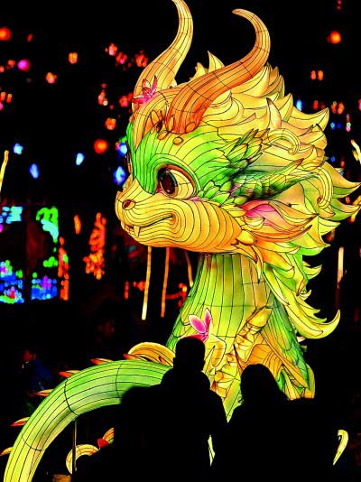 除了年味十足的庙会,灿烂夺目的灯会也备受游客青睐。流光溢彩的花灯令很多市民游客流连忘返。近几年,彩灯技术不断更新,迎春灯会与国风潮流、地域文化、年节文化、科技元素结合起来,充满创新创意和人文气息。