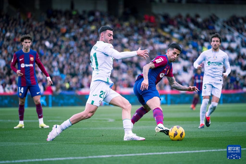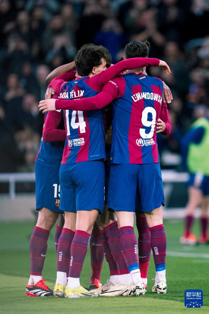 当日,在2023-2024赛季西班牙足球甲级联赛第26轮比赛中,巴塞罗那队主场4比0战胜赫塔菲队。