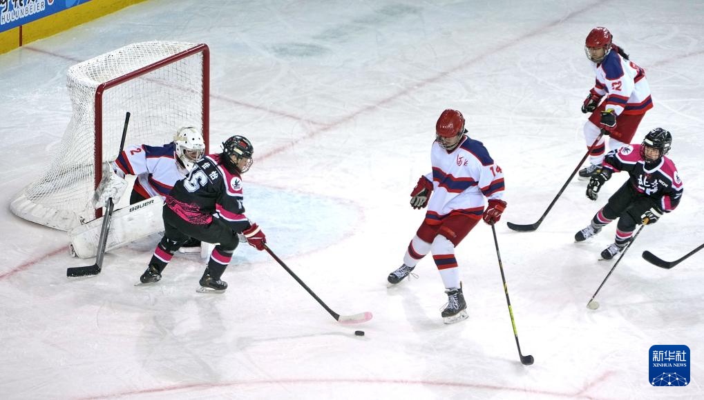 当日,在内蒙古冰上运动训练中心冰球馆举行的第十四届全国冬季运动会青年组女子冰球半决赛中,北京队7比0战胜河北队,晋级金牌赛。